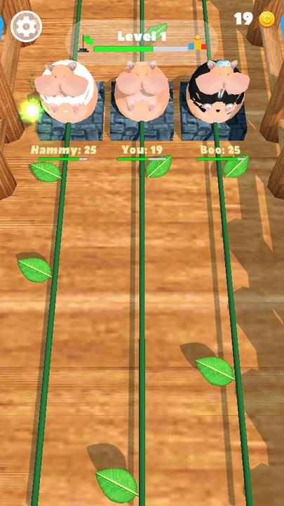 这是一场喂仓鼠的比赛,你的仓鼠饿了,需要吃叶子,但是只能等到叶子经过仓鼠时才能吃到,所以你的动作不仅要反应及时,让自己的仓鼠吃到足够多的叶子,还要比对手吃的快,才能赢得比赛,获得更高的奖金。